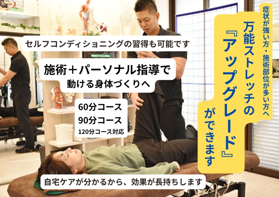 (※症状が酷い方、施術部位が多い方は60分以上のアップグレードコースをお選びください)